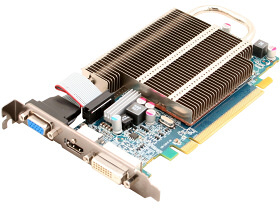 Moderní grafická karta, která bez problému spustí i nejnovější hry. Podporuje nejnovější DirectX11, samozřejmostí je pak hardwarová akcelerace videa i HDMI se zvukem pro připojení televize. Je možné na ni připojit až dvě zobrazovací zařízení zároveň pomocí digitálních konektorů pro ostrý obraz (DVI, HDMI) nebo analogového konektoru (D-SUB). Díky pasivnímu chlazení je tato karta naprosto bezhlučná.