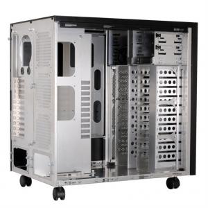 Výjimečná obří skříň dokáže svými rozměry s rezervou pojmout i základní desky rozměru HPTX. Další specialitou jsou pozice pro 20 pevných disků s možností rozšíření o další. Pro výborné možnosti chlazení je skříň možné osadit tímto množstvím ventilátorů: 6x 120 mm (vpředu), 3x 140 mm (vzadu), 3x 120/140 mm (z boku), 1x 120 mm (vzadu). Doporučujeme osazení všech předních i zadních pozic. Na čelním panelu jsou vyvedeny 4 konektory USB 3.0, možnost využití konektorů závisí na základní desce. Skříň nemá čelní audio konektory.