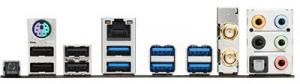Základní deska vyvádí dozadu počítače tyto konektory: 2x USB 2.0, 8x, USB 3.0, 1x Gbit síť, optický výstup a Jack výstupy pro až 7.1 reproduktory