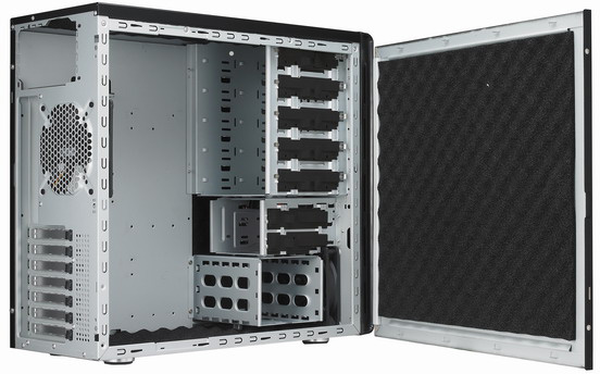 Má výborné možnosti chlazení. Dodává se se 120mm předním nasávacím ventilátorem a zadním ventilátorem, který se stará o vyfukování ohřátého vzduchu z počítačové skříně. Na čelním panelu jsou vyvedeny 2 konektory USB, jeden eSATA a audio konektory (sluchátka a mikrofon). Skříň je speciálně vybavena pro snížení hluku.