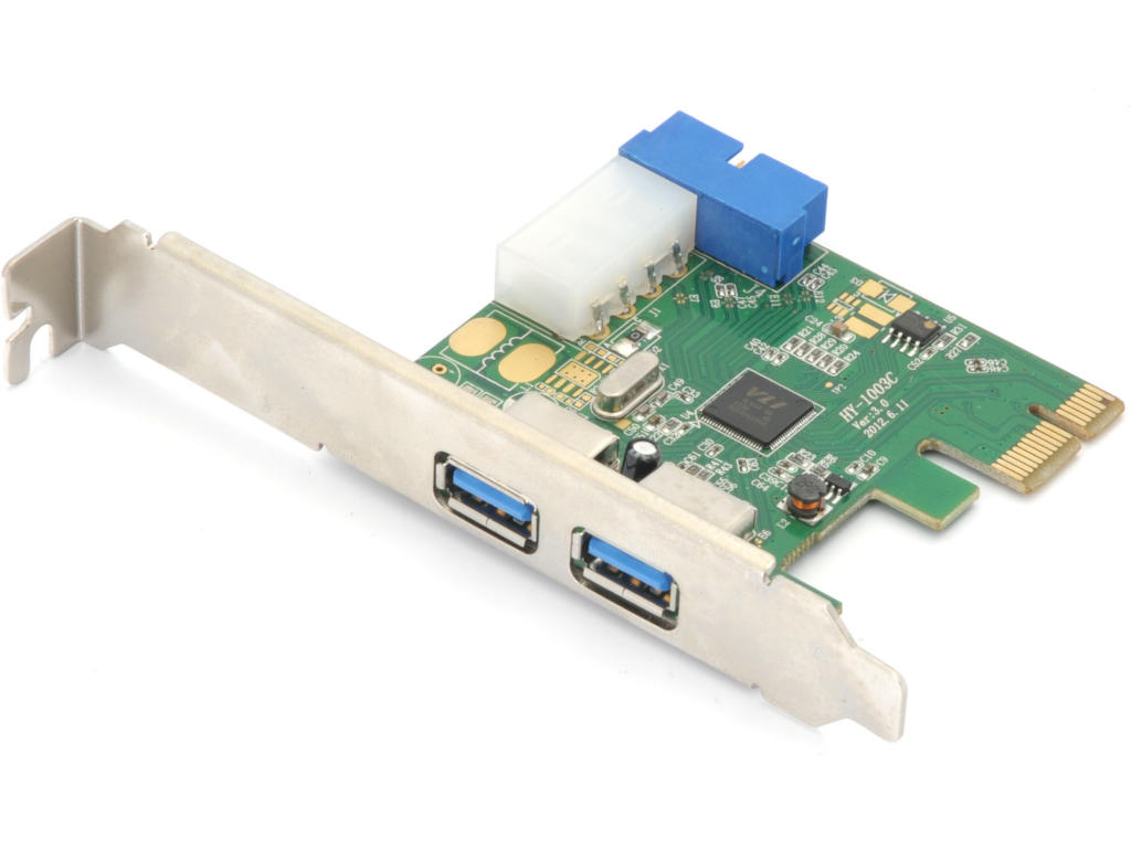 Rozšiřující 3,5" panel vyvádí z vlastní PCIe karty dva USB 3.0 konektory na čelo skříně a dva USB 3.0 konektory dozadu skříně.