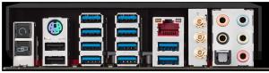 Základní deska vyvádí dozadu počítače tyto konektory: 2x USB 2.0, 10x, USB 3.0, 1x PS/2, 1x Gbit síť, optický výstup a Jack výstupy pro až 7.1 reproduktory